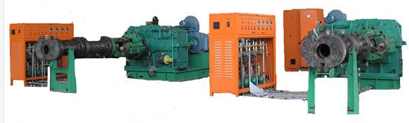 本公司冷喂料橡膠擠出機系統 產(chǎn)品:產(chǎn)品規格有45(50)、60、70、75、90、120、150、200等;結構形式有普通式和銷(xiāo)釘式,功能有排氣和非排氣式;用途有濾膠如B段膠的過(guò)濾,供膠如輪胎膠面膠片及產(chǎn)品擠出如密封條、膠管、電纜等;驅動(dòng)及控制系統有直流電機與直流調速器控制、變頻電機與變頻器控制,伺服電機與伺服驅動(dòng)器控制。